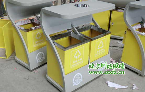 海南省海口市鋼制垃圾桶,是按照顧客的圖紙要求來制作。垃圾桶頂部弧形設(shè)計(jì),呈現(xiàn)愛心形狀,用來防止雨水傾入內(nèi)桶。左右兩桶,采用黃顏色噴漆,內(nèi)桶充分利用空間。簡約搭配,巧妙的設(shè)計(jì),多了一份有特色,有創(chuàng)意,有內(nèi)涵!