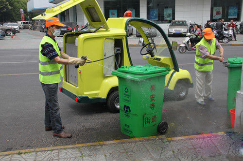 日前,區(qū)環(huán)衛(wèi)處引進(jìn)的高效垃圾桶清洗車正式“上崗”了,循環(huán)對全區(qū)56條主次干道、近1500個環(huán)衛(wèi)垃圾桶進(jìn)行清洗。