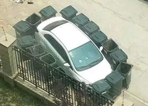 19日中午,青島杭州路中海臨安府南門外,一輛停在路邊的私家車被十幾個垃圾桶圍得“水泄不通”。“垃圾桶氣味大,被包得這么嚴實,真是醉了。”“這輛白色轎車到底惹了啥禍?要遭受這種待遇。”照片一經(jīng)發(fā)布,立即引發(fā)網(wǎng)友熱議。