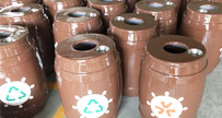景區戶外玻璃鋼鼓形木桶收集垃圾創意有特色