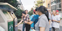 在越城區蕺山街道岑草園一期小區,居民們正在社區干部的指導下,嘗試刷卡投放垃圾。當天,這個小區的居民們首次領到了智能卡,今后他們將使用智能設備分類投放垃圾...