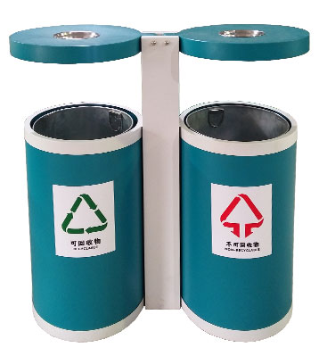 四川德陽樓盤戶外三分類垃圾桶側面帶大煙灰柱