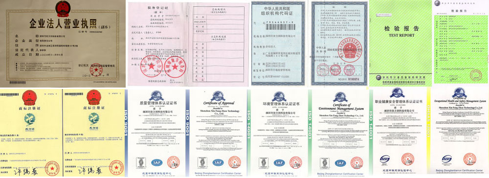 欣方圳營業執照、稅務登記證、組織機構代碼證,欣方圳垃圾桶檢驗報告、垃圾桶資質,“欣方圳”注冊商標,欣方圳ISO9001:2008、ISO14001:2004、OHSAS18001認證證書