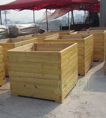 欣方圳木質花箱原材料采用真空泵排除空氣、填充防腐液、加壓滲透、抽真空排出多余防腐液達到先進的防腐防蟲工藝。