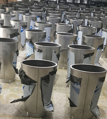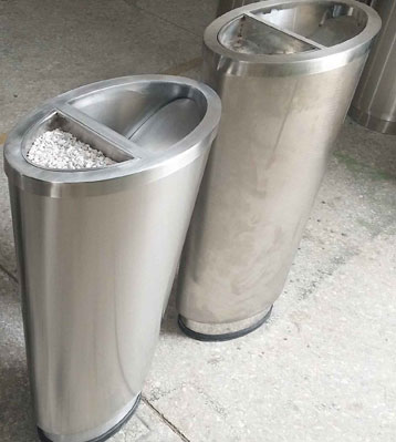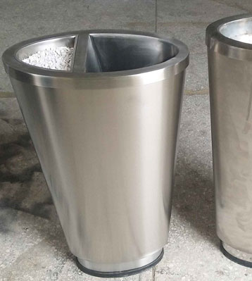 錐體設計藝術美觀,采用優質不銹鋼材質經激光切割、折彎、焊接成型,金屬亮澤易清理。重心平衡非外力因素不傾倒,果皮煙蒂收集室內清潔幫手。
