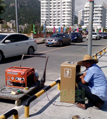 巽寮灣戶外單桶鋼制垃圾桶現場安裝固定圖