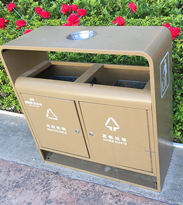 • 使用范圍:戶外鋼制分類垃圾桶表面光滑、亮麗,是電梯口、寫字樓、學校、物業(yè)、賓館、酒店、機場、汽車站等擺放的首選。