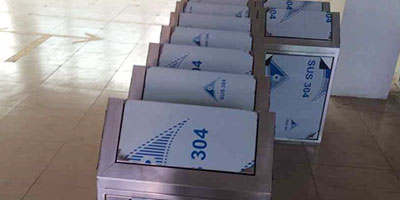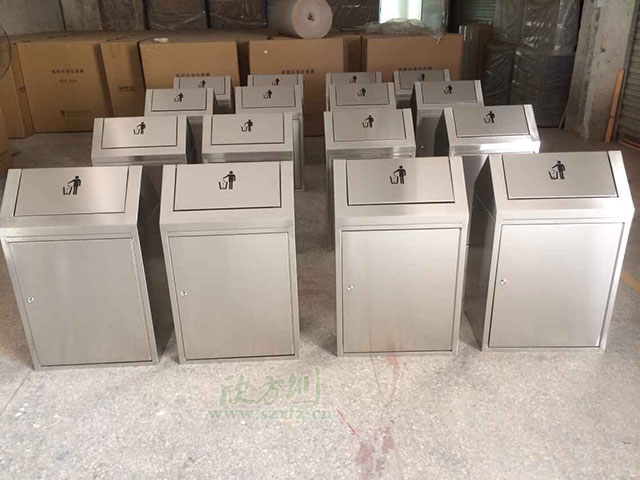 欣方圳專業生產不銹鋼推蓋垃圾桶,車間有數控折彎機、數控沖床、滾圓機、數控車床、激光切割機、送樣機、鏜床、二保焊機等行業先進設備。