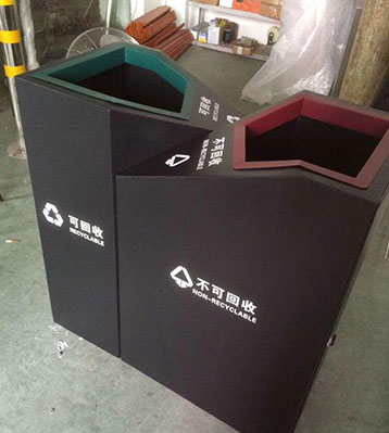 欣方圳鋼板噴塑分類垃圾桶表面經(jīng)過(guò)除油、噴砂防銹處理后,再進(jìn)行酸洗磷化處理;表面清理干燥后整體進(jìn)行靜電噴涂或烤漆處理.。