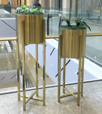 商場香檳色不銹鋼花盆圖