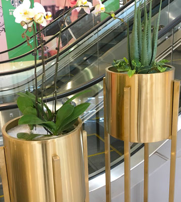 商場金色不銹鋼花盆現(xiàn)場擺放圖