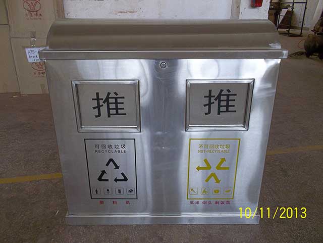 • 產品材質:不銹鋼分類垃圾桶采用201#,202#,304#優質不銹鋼材料模壓成型,堅固耐用,不易破損;耐火安全,抗高低溫,適合各種惡劣氣候條件;金屬亮澤,高雅美觀,廣泛適用于各種場所;內外表面光潔,減少垃圾殘留,易于清潔;配置鍍鋅板內桶,便于垃圾清倒;