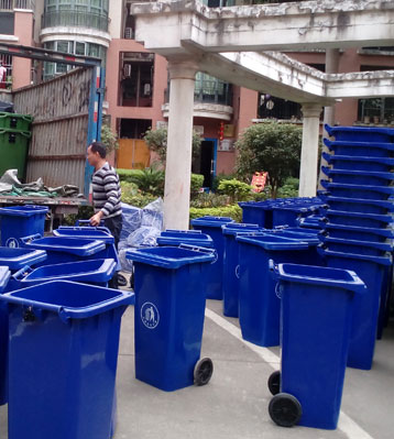 120/240升塑料垃圾桶批量出貨及工廠生產圖