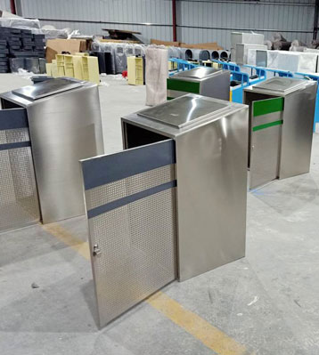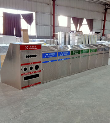 • 產(chǎn)品材質(zhì):不銹鋼沖孔社區(qū)垃圾分類收集站采用201#,202#,304#優(yōu)質(zhì)不銹鋼材料模壓成型,堅(jiān)固耐用,不易破損;耐火安全,抗高低溫,適合各種惡劣氣候條件;金屬亮澤 ,高雅美觀,廣泛適用于各種場(chǎng)所;內(nèi)外表面光潔,減少垃圾殘留,易于清潔;配置鍍鋅板內(nèi)桶,便于垃圾清倒;