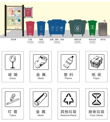 • 使用范圍:深圳龍崗區城中村垃圾分類投放點,居民住宅區玻金塑紙廚余其他有害垃圾分類垃圾桶帶宣傳欄洗手盆標準,定時定點督導深圳龍崗3.0垃圾分類模式。
