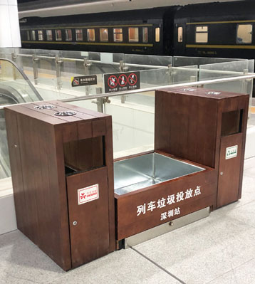深圳東站列車站臺垃圾桶打造清潔旅途環境