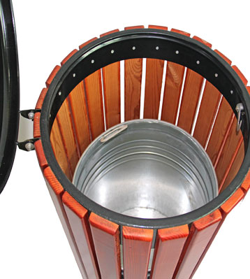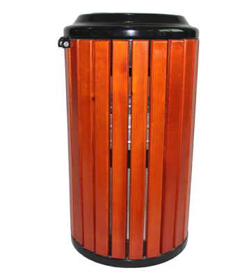 欣方圳戶外街道圓形鋼木單桶垃圾桶原材料
